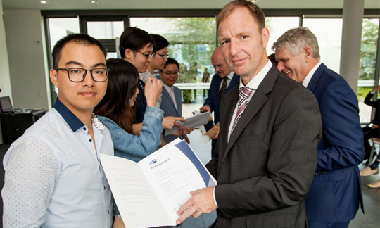 项目介绍:按照德国职业教育培训大纲,以及德国行业协会(IHK/HWK)的考试要求,采取中德合作办学模式(3+1或5+1),学生经过培训并通过德国行会对其德语以及专业技能测试,获得德国行业协会(IHK/HWK)颁发的职业鉴定证书,此证书为各国认可,可直接在德国就业或在德国进行更高阶段的职业教育及高等教育。